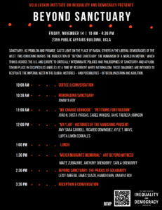 UCLA Luskin Institute on Inequality and Democracy presents “Beyond Sanctuary”, a series of dialogues intended to restituate the imperial vest in the global histories — and posssibilites — of decolonization and abolition.