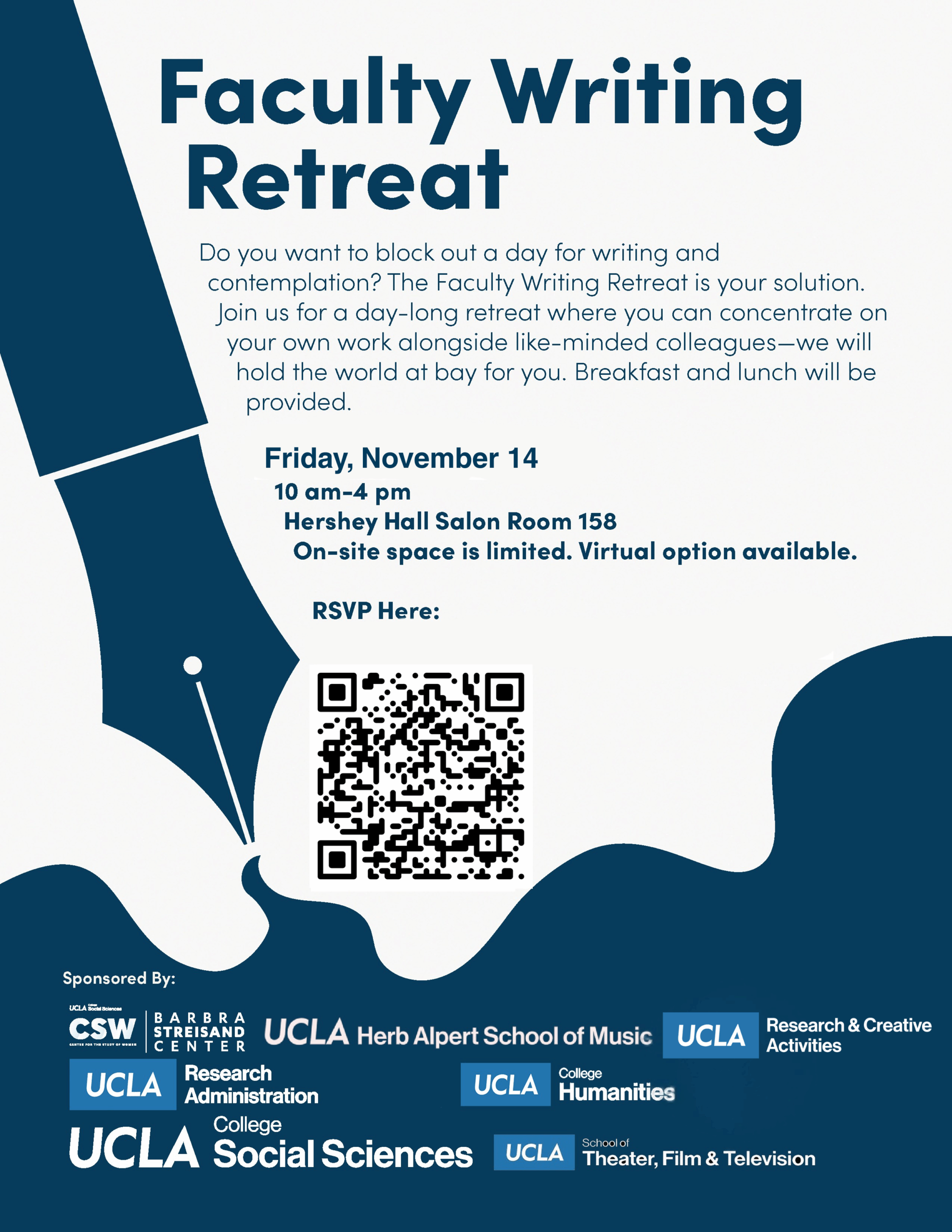 RSVP Here Join CSW|Streisand Center for a day-long retreat where you can concentrate on your own work alongside like-minded colleagues. Friday, November 14 10 am – 4 pm Hershey Hall […]