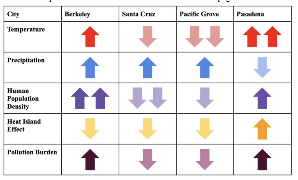 Table 1: Comparison of current basic environmental and anthropogenic factors of each of the study cities.